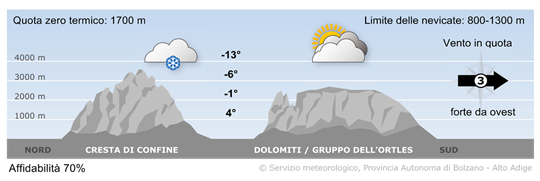 Dopo le nevicate nella notte le precipitazioni si esauriranno già al mattino. Nel corso della giornata locali schiarite, lungo la cresta di confine il tempo rimarrà variabile.